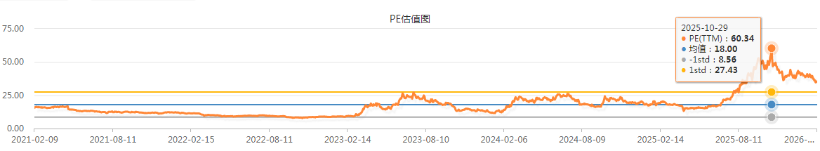 我们看到2023年初PE(TTM)仅9.2,而按照2025年10月底60倍PE(TTM)算,增长达652%。利润增幅,按照25年利润业绩预告上限357 亿元,与2023年利润210亿元上涨70%,两者相乘刚好匹配这个十倍股涨幅,显然PE贡献了这10倍涨幅中的6.5倍,属于最核心的驱动因素。