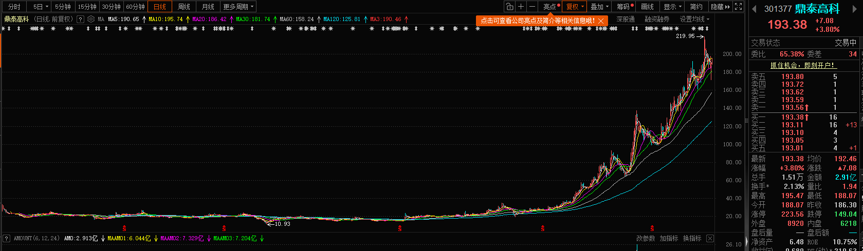 鼎泰高科与健鼎科技、深南电路、方正科技、华通电脑、胜宏科技等国内外知名PCB 厂商建立长期稳定合作关系,前五大客户营收占比均低于33%,客户分散于PCB行业中,并不依赖某一个大客户,广泛分布于行业中。如果下游行业PCB大爆发,鼎泰高科的业绩也是水涨船高,它的产品是下游客户在生产中的耗材。