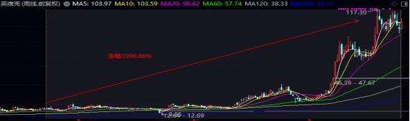 股价跟随业绩和产业发展,从2023年1月30日至今,最大涨幅1090.86%。其中2023年涨8.04%,2024年涨93.37%,2025年大爆发涨245.7%。