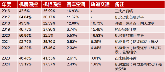 根据公司招股说明书和历年年报公告,我们提取出关于公司历年在温控环节的营收及占比,如下:
