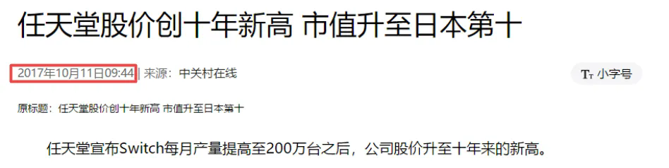 图2:任天堂2017新闻,来源:网络